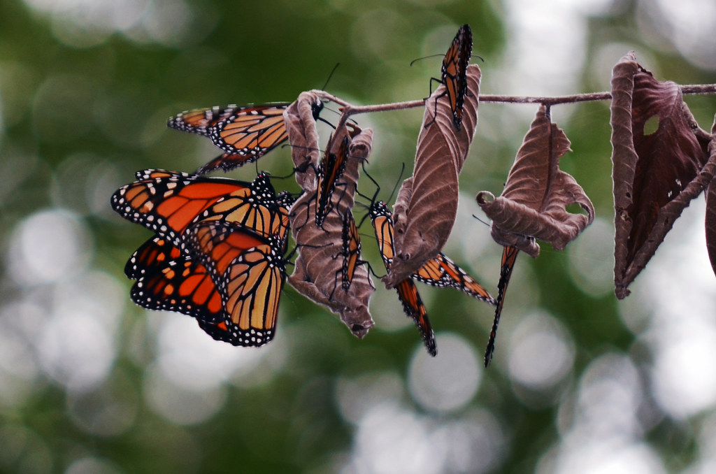 sonnecchianti nei loro siti di svernamento in Messico, fino alla primavera successiva: a quel punto si riproducono e volano verso nord per deporre le uova fecondate sulle piante di Asclepias appena germogliate, dopodichè muoiono. In autunno, dopo alcune generazioni primaverili ed estive (queste generazioni durano molto meno rispetto alla generazione che migrerà: tra maggio e settembre si susseguono diversi cicli di bruchi-farfalle-uova), nuovi coraggiosi individui si tuffano nel vento diretti verso sud. Come sia possibile per queste farfalle realizzare ogni anno una migrazione così lunga e precisa rimane in buona parte un bellissimo mistero. Per ora sappiamo che utilizzano una sorta di bussola solare supportata da un orologio interno che permette loro di aggiustare la rotta a seconda dell’ora del giorno e quindi della posizione del sole!