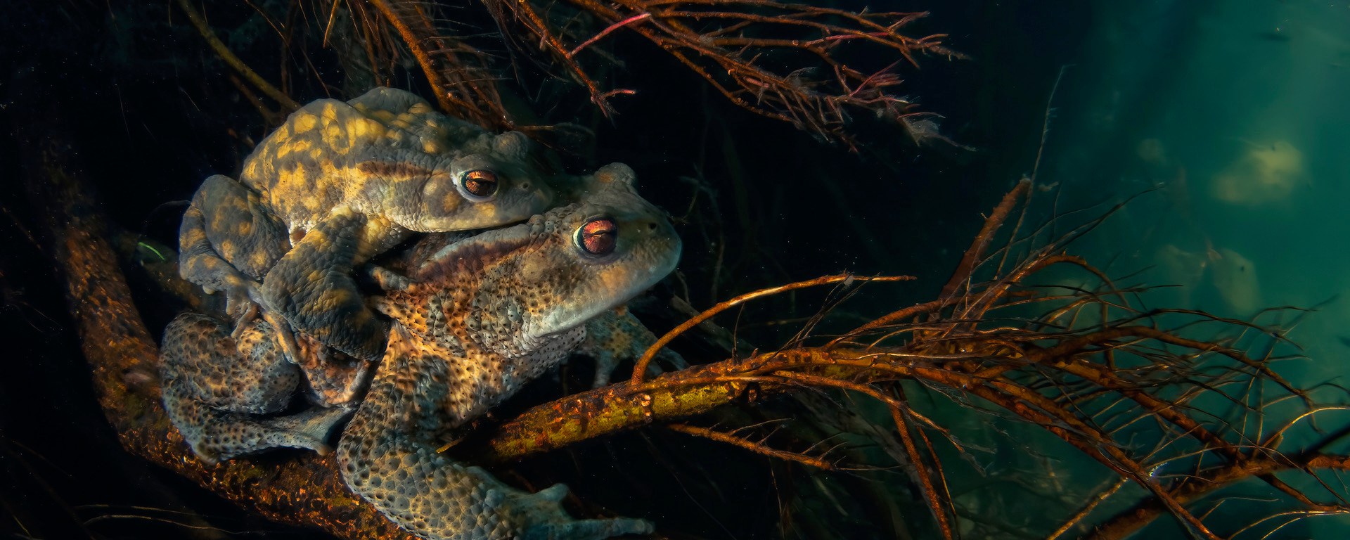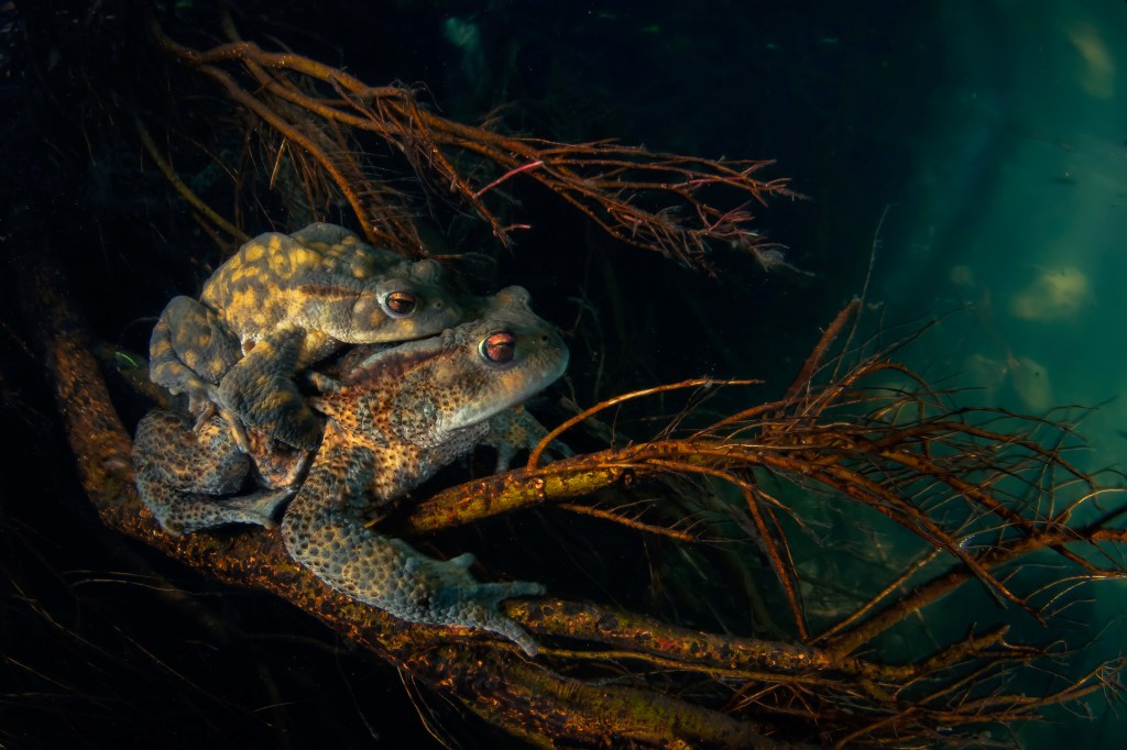 E’ stato percepito un cambiamento nell’aria invernale, la sveglia sta suonando e non ce ne sarà un’altra. Le tane vengono abbandonate: escono rospi da sotto tronchi e sassi, da dietro un cumulo di mattoni rivestiti di muschio o dai corridoi sotterranei di una talpa.