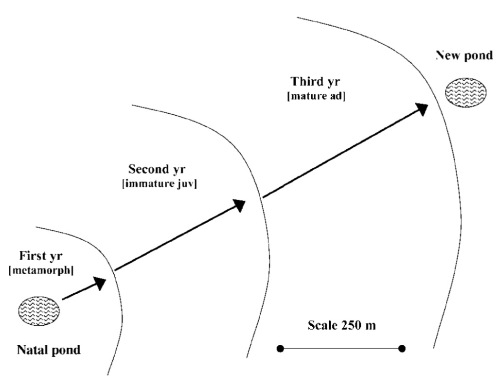 I rospi sono inoltre molto fedeli al sito riproduttivo ed in uno studio di Sinsch (1987) sette rospi su dieci sono riusciti a tornarvici con successo, dopo essere stati forzatamente spostati per ben 3 km! Tuttavia hanno avuto bisogno fino a tre giorni per riuscire ad orientarsi nella direzione giusta. È stato dimostrato che per riuscire nella migrazione il rospo comune utilizzi una varietà di riferimenti spaziali, tra cui segnali magnetici, acustici, olfattivi e visivi. Nonostante la fedeltà al sito alcuni rospi, solitamente i giovani, si cimentano in veri e propri dispersal (letteralmente dispersione; ne abbiamo parlato meglio nell’Episodio #1), partendo con intraprendenza alla ricerca di nuovi siti riproduttivi!