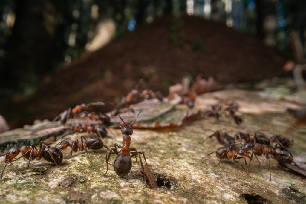In una mattinata insolitamente fresca di fine agosto, quattro ricercatori ed un fotografo si fanno strada attraverso il sottobosco umido delle abetaie di Campigna, nel cuore del Parco Nazionale delle Foreste Casentinesi. I loro occhi sono fissi al letto di foglie e sterpaglie, alla ricerca di una pista lasciata dalle abitanti più numerose dell’area. Non tardano a trovarla: lunghe ed ordinate file di formiche fulve si diramano in tutte le direzioni, coprendo ogni frazione calpestabile di lettiera. Seguendo una delle tante scie, gli sguardi incrociano un alto cumulo di aghi d’abete e resina, un gioiello architettonico di entomologica fattura: si tratta del nido di queste intrepide esploratrici, un acervo. Ma di che formiche si tratta? E soprattutto, che cosa ci fanno qui?