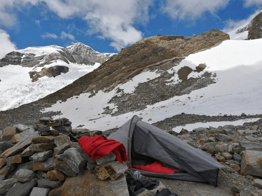 Nel 2019, con quello che allora non sapevo che sarebbe diventato per me un amico fraterno e compagno di molte avventure, ho deciso di provare il mio primo 4000; la punta Gnifetti del monte Rosa. Avevo 24 anni e Damiano ne aveva 26; eravamo mossi da uno spirito avventuroso, ribelle e dalla ricerca di sensazioni dimenticate: quelle dei primi esploratori. Ci siamo spesso fatti domande sull’alpinismo e sulla sostenibilità della moda dell’alta quota; ci siamo chiesti come trovare la massima autenticità e una sfida sincera con noi stessi anche nelle piccole imprese. La punta Gnifetti ospita il rifugio Capanna Margherita, il più alto d’Europa a 4554 m.s.l.m. e si tratta di una facile ascesa, ideale per chi è alle prime armi con i 4000; insomma, non un’impresa degna degli annali di alpinismo, ma piuttosto una soddisfazione per due giovanotti poco più che autodidatti. Informandoci su come salire, abbiamo letto di funivie che arrivano a oltre 3000 m, di rifugi situati a oltre 3500 m di quota con più di 170 posti letto che offrono tra i servizi il sacco lenzuolo monouso ai clienti, cena, colazione, pranzo, birra, acqua in bottigliette di plastica da 0,5 l e tutto quello che possiamo aspettarci da una baita di fondo valle. Inoltre, pensare a quanti viaggi gli elicotteri dovessero fare per l’approvvigionamento di questi rifugi e a quanti rifiuti producessero lassù (sempre da portare giù in elicottero) ci fece rabbrividire. Così abbiamo scelto che l’autosufficienza sarebbe stata il nostro stile, quasi per ribellarci a questa forma di “domesticazione” della montagna e per ripercorrere le orme dei nostri eroi di altri tempi che hanno scritto le pagine dell’alpinismo sulle Alpi e sugli Appennini senza funivie, riscaldamento o ristoranti ad addolcirne le imprese.