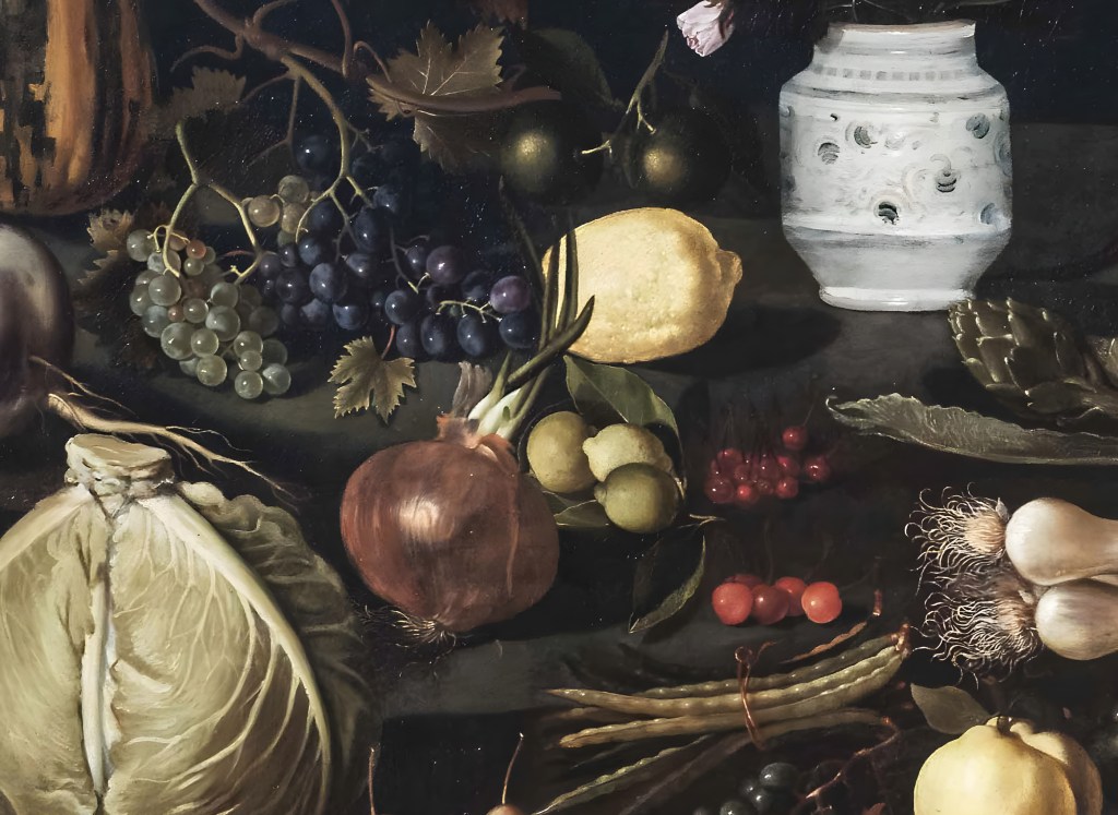 Con il nome Maestro di Hartford, si identifica un artista in attività all’inizio del XVII secolo. Non si conosce la sua identità, ma la sua realizzazione di numerose Nature Morte e la sua bravura pittorica vengono tutt’oggi ricordati. Nel dipinto Vaso di fiori, frutti e ortaggi, possiamo vedere chiaramente una cipolla appoggiata in mezzo ad agrumi e grappoli d’uva.