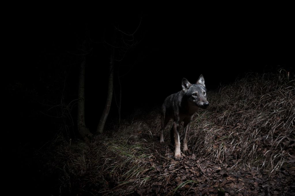 Ancora una volta la notte mi ha premiato con risposte inaspettate. Proprio in quel piccolo boschetto, dopo tanta attesa, ho avuto il mio primo incontro con il lupo. Quegli occhi a fissare l’obiettivo della fotocamera hanno evocato in me un’emozione profonda, un richiamo ancestrale. Il suono della vita selvaggia, ad un passo da casa. Dopo anni passati a cercare di comprenderne le abitudini, a studiarne le tracce, a raccogliere informazioni come frammenti di un disegno più grande, eccolo lì. Simbolo di una natura che resiste, portatore dei segreti di quel mondo parallelo, finalmente il lupo.