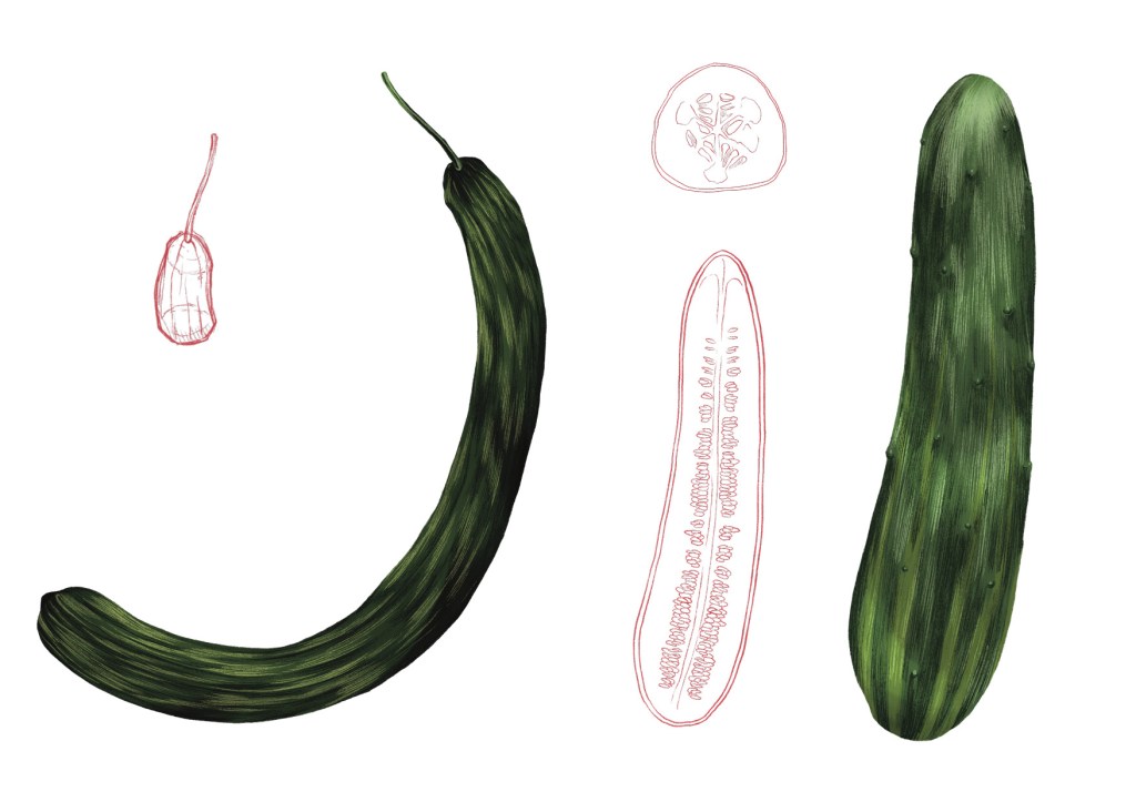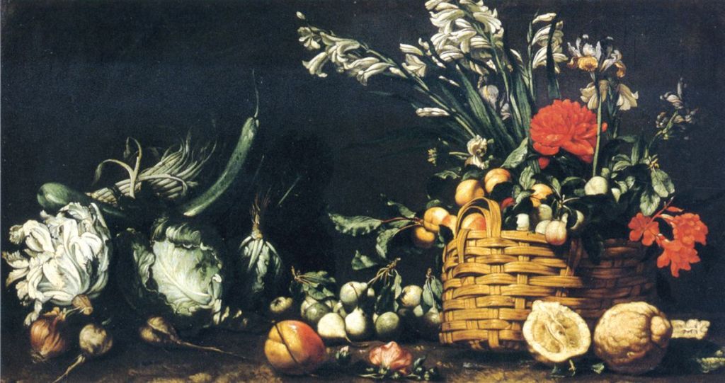 Simone del Tintore è stato un pittore della seconda metà del 1600. Ha dedicato molto della sua produzione alla Natura morta, lasciando prove tangibili della cultura del cibo nella Toscana del XV sec. Nell’opera Natura morta con vegetali e canestro di frutta, possiamo notare a sinistra un ortaggio curvo e oblungo. L’aspetto del cetriolo sicuramente cambiava a seconda della varietà, differente dal Vaso di fiori, frutti e ortaggi, del Maestro di Hartford, dove in primo piano troviamo un cetriolo esteticamente molto simile a quelli oggi mangiamo sott’aceto.