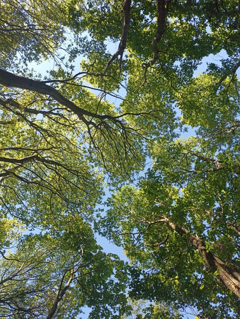 I protagonisti sono i faggi (Fagus sylvatica), alberi alti, maestosi ed eleganti, le cui chiome fitte e ramificate crescono spesso lasciando tra loro uno spazio sottile, come se si rispettassero a vicenda — o almeno mi piace pensarla così. È un fenomeno affascinante, noto come “timidezza delle chiome”, che secondo studi recenti aiuterebbe la luce a filtrare tra gli alberi e ridurrebbe i rischi di danneggiamento quando il vento attraversa il bosco.